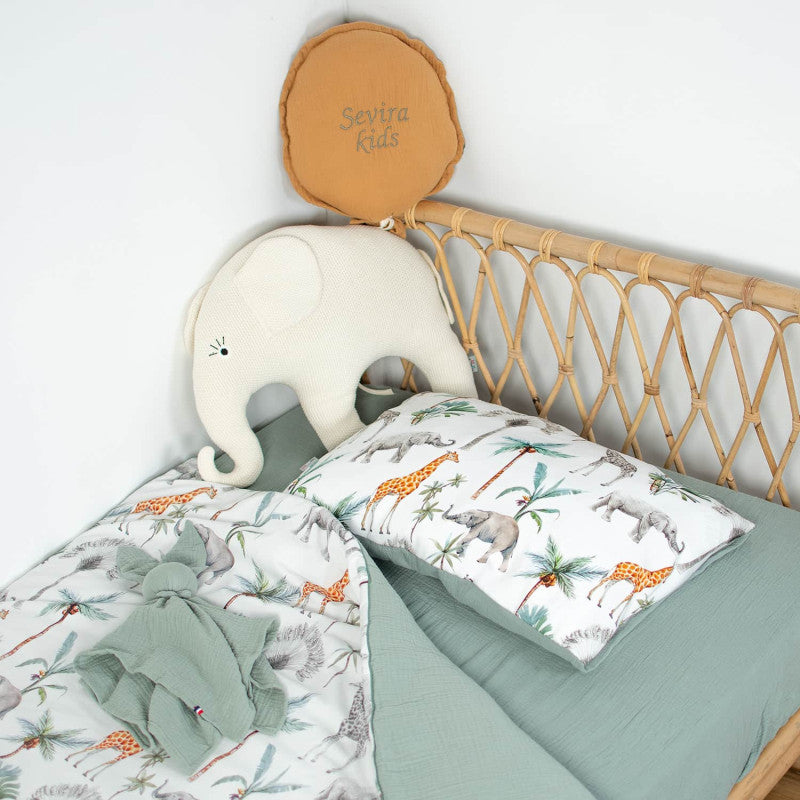 Envolez-vous vers la savane avec notre ballon mural décoratif Safari. Bien plus qu'un simple ornement, cet accessoire textile apporte du relief et de la douceur aux murs de la chambre de bébé, transformant son espace en un univers de rêve et d'évasion.. Confectionné en satin de coton d'une grande douceur, il symbolise l'évasion grâce à ses motifs aquarelles d'animaux de la savane. Pratique et polyvalent, il se suspend en un clin d'œil au-dessus du lit ou de la table à langer grâce à sa boucle de fixation intégrée. Son garnissage en ouatine microgel assure un volume généreux et une durabilité exceptionnelle, apportant une note de légèreté et d'élégance à l'univers de votre tout-petit.