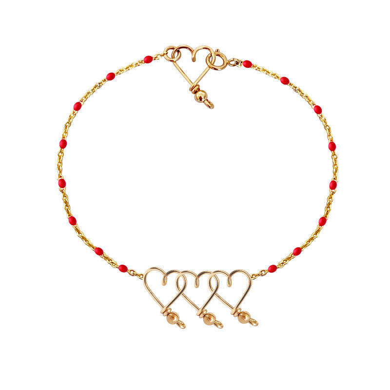 Choisissez le nombre de petits coeurs que vous souhaitez sur votre bracelet en chaine rosaire plaqué or, la taille de votre poignet ainsi que la couleur de votre chaine.