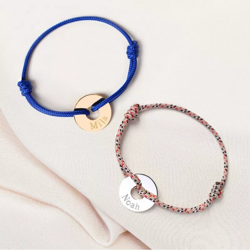 Ce duo se compose de deux bracelets avec médaille cible en argent 925 pour l'homme et en plaqué or 18 carats pour la femme.