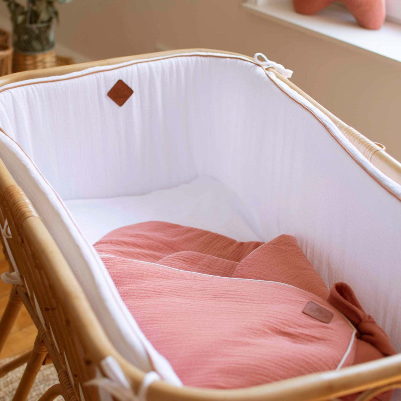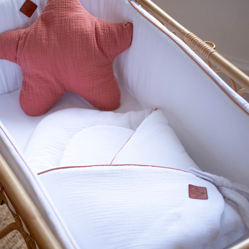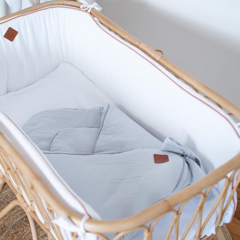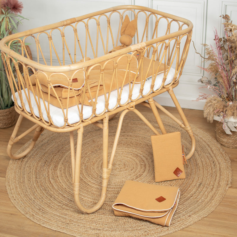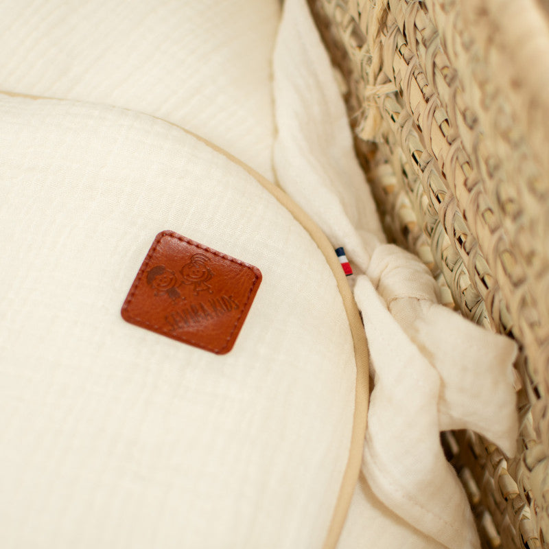 • Composition : 100% gaze de coton, garnissage polyester, matelas en mousse polyuréthane amovible.